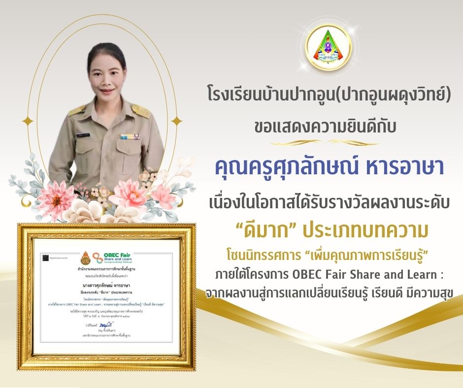 โรงเรียนบ้านปากอูน(ปากอูนผดุงวิทย์) ขอแสดงความยินดีกับค